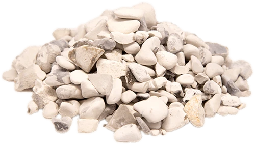 De hvide sten er 100 % naturlige og varierer i størrelsen fra 4 – 18 mm. Stenene er lette og har en fin rund facon. Stenenes nuanceforskel gør, at de klæder mange byggerier, uanset om det er mursten, træ eller beton.