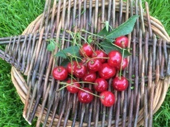 Kirsebær “Stella” får store, mørkerøde, søde og saftige kirsebær.