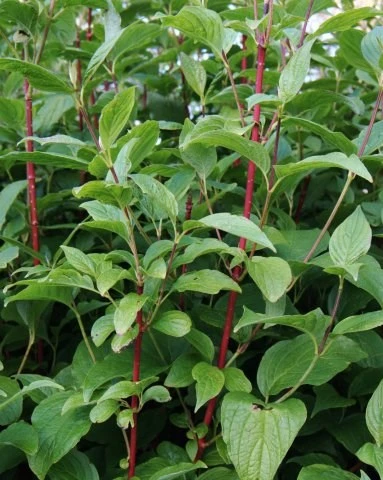 Rød kornel er en stivgrenet og kraftigvoksende busk som bliver 2-4 m. høj og 2-3 m. bred.
