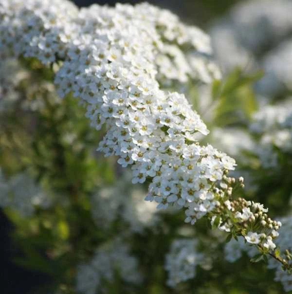 Graciøs busk. 1,5-2 m høj og bred med overdådige mængder af hvide blomsterskærme i april-maj. Placering i sol i alm. havejord. Velegnet til solitær, busketter og som uklippede hække.